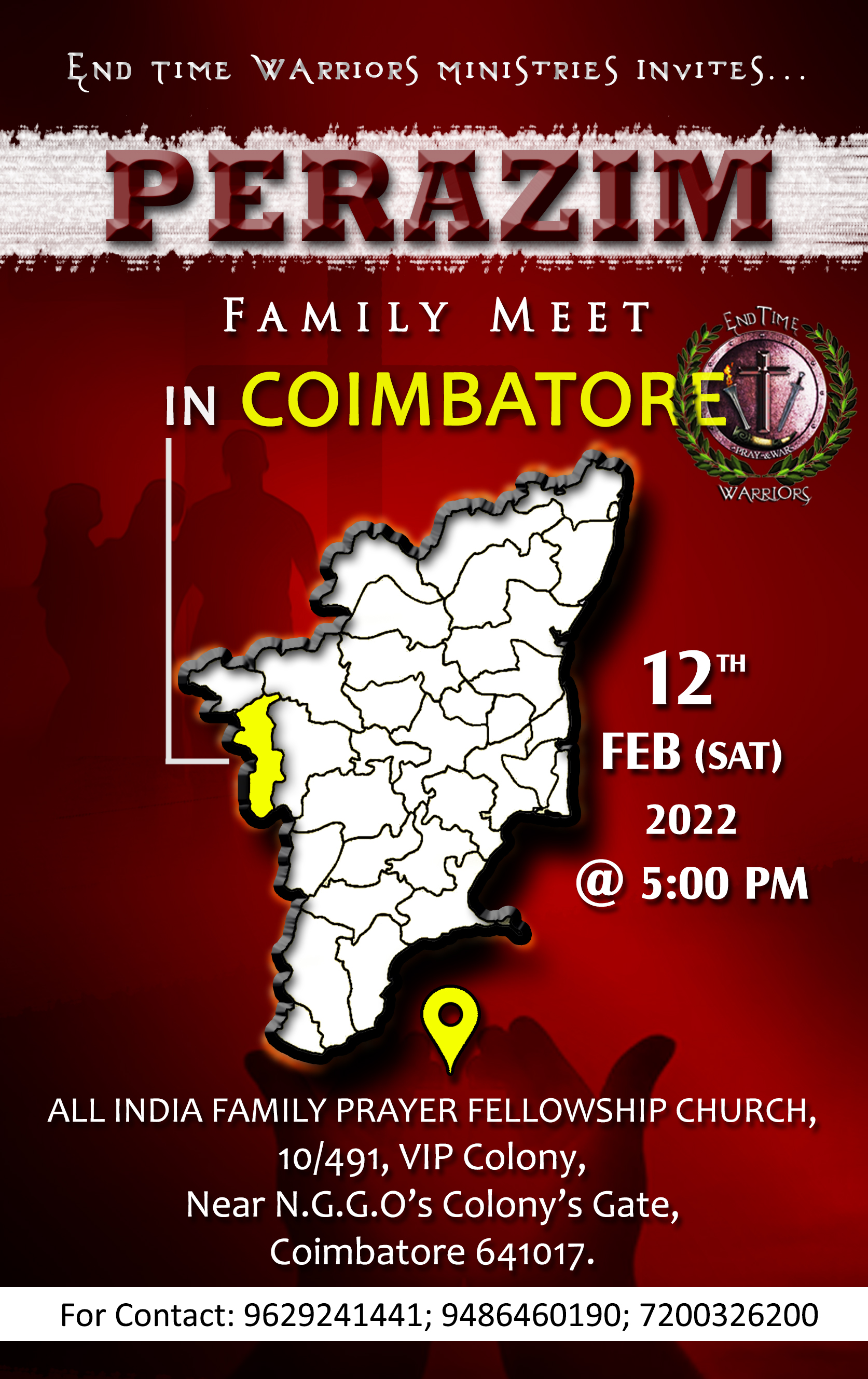 GOD has spoken and inspired End Time Warriors from 1 Chronicles 12:22 " …until he had a great army, like the army of God". With God's guidance and grace, the ministry of End Time Warriors is reaching out to young teens and youth in educational institutions (schools and colleges) and churches (regardless of denominations) in and around Tirunelveli and in various parts of Tamil Nadu to make them to lead a conquering Christ-like life. We encourage/teach this younger generation to lead a spiritual life pleasing to God, how to inculcate Christian moral values in their daily lives, how to grow/carry the vision that God has provided, and how to engage in God's plan. Our ministry is licensed as per the Indian government norms. We had witnessed the power of God in our ministry to see a humongous crowd following Jesus Christ's footsteps and live a faithful Christian life.